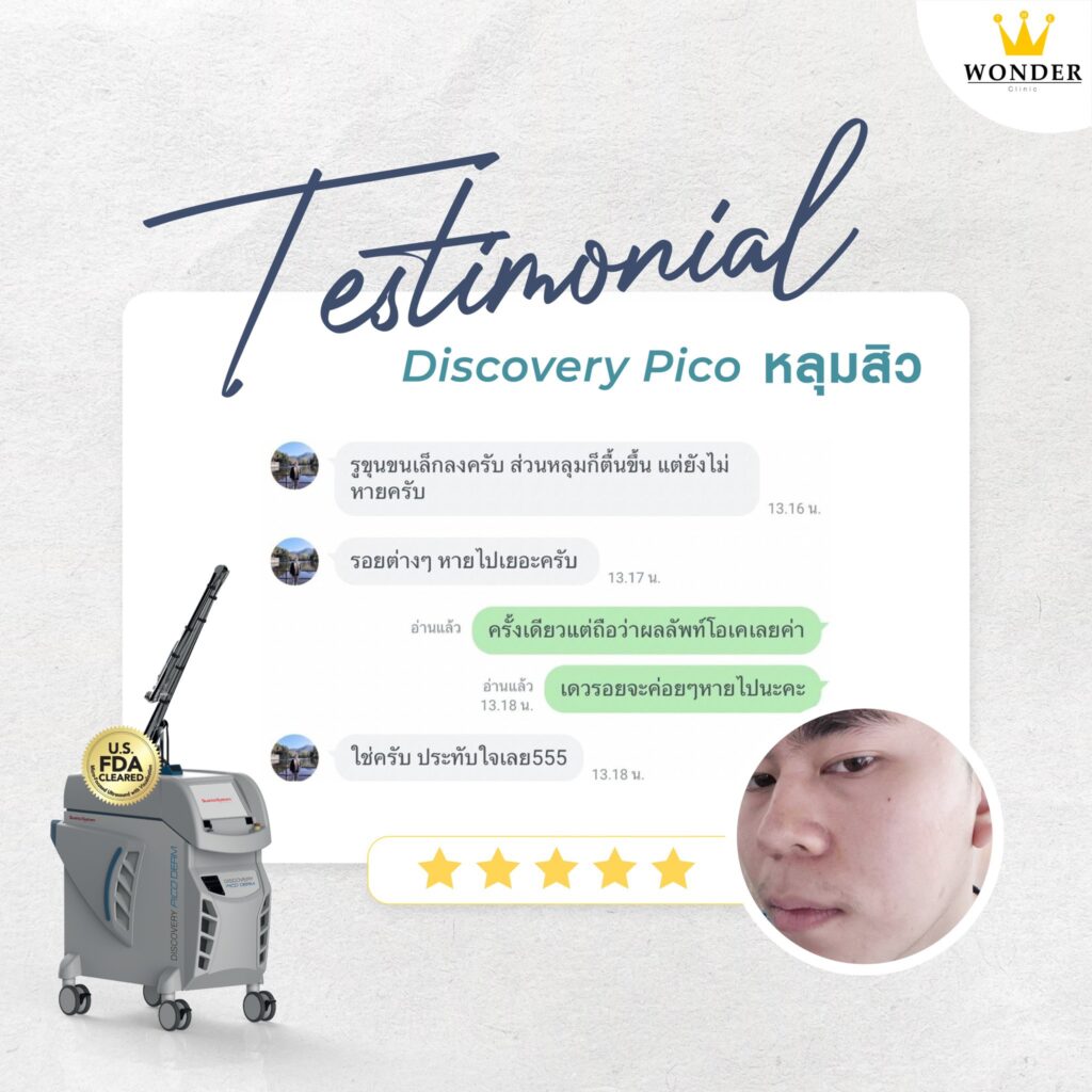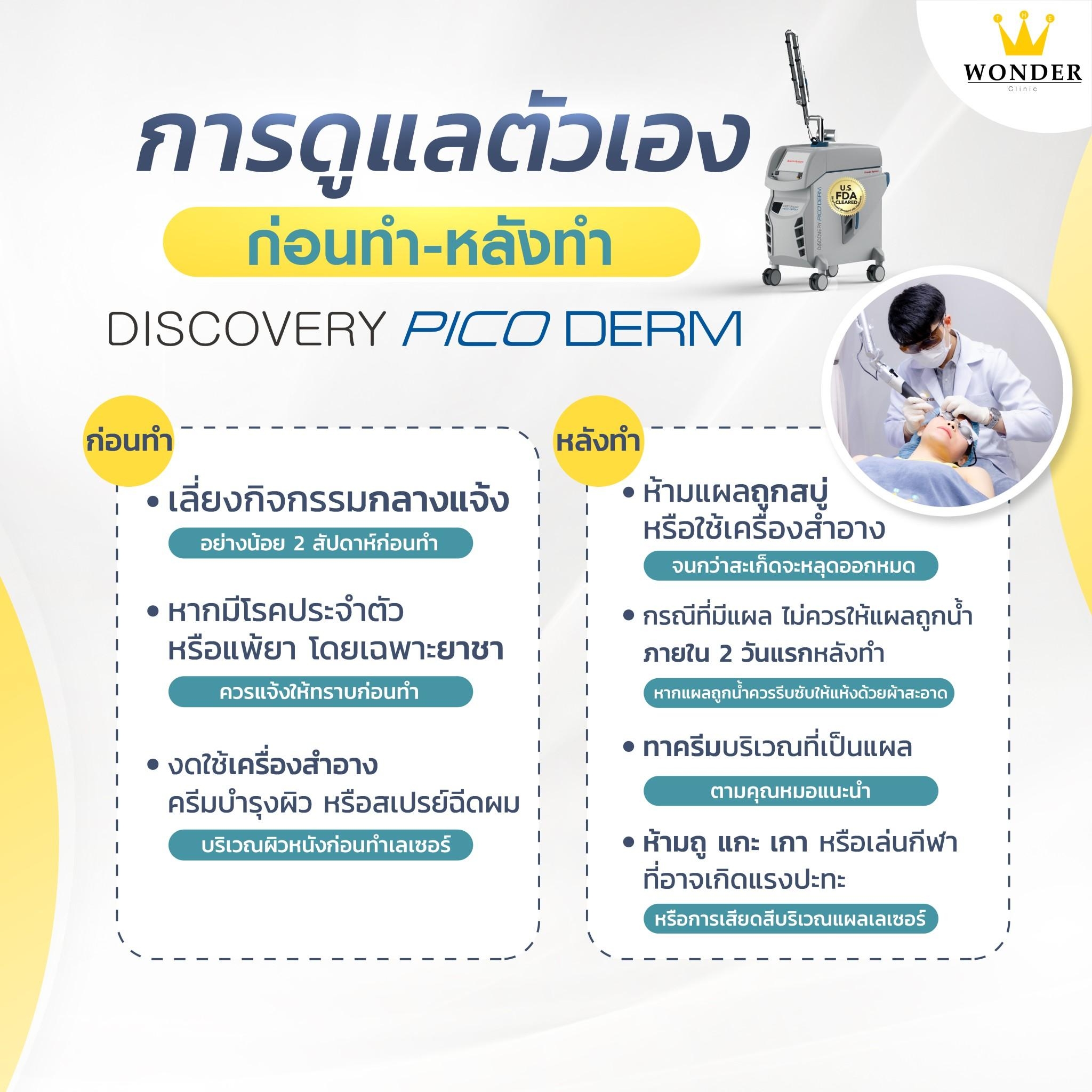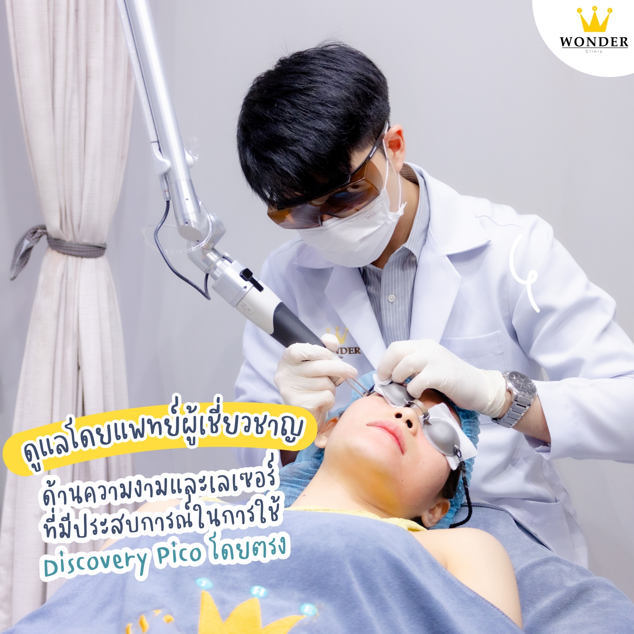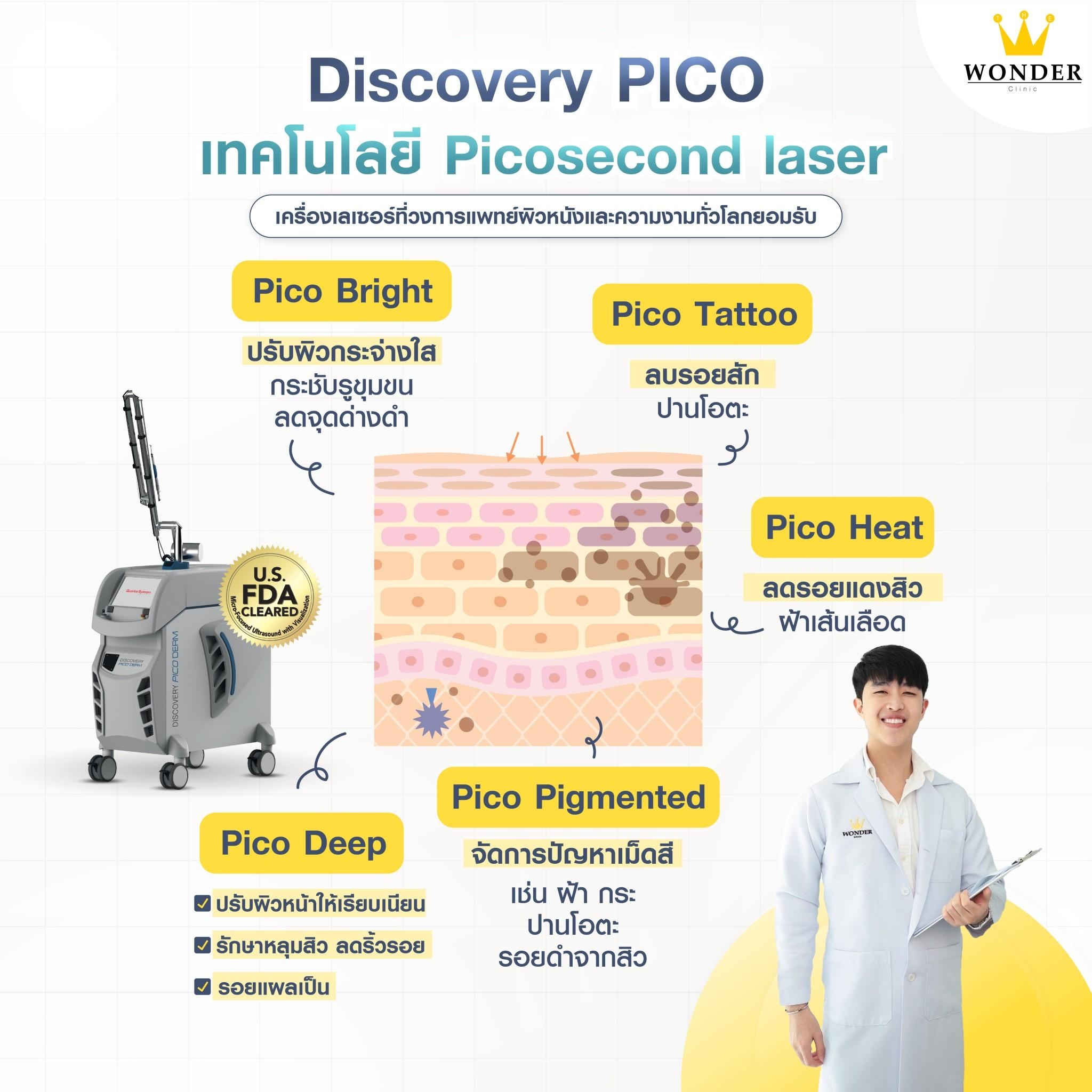 แต่เราไม่จำเป็นต้องยิงแบบนั้นกับทุกคน Discovery PICO สามารถยิงในโหมดที่เบาลงมาได้ โดยเน้นเรื่องเม็ดสี และปรับสภาพผิวส่วนบน หลังทำใบหน้าจะมีแค่แดงอมชมพู ซึ่งหายได้เองในไม่กี่ชม.