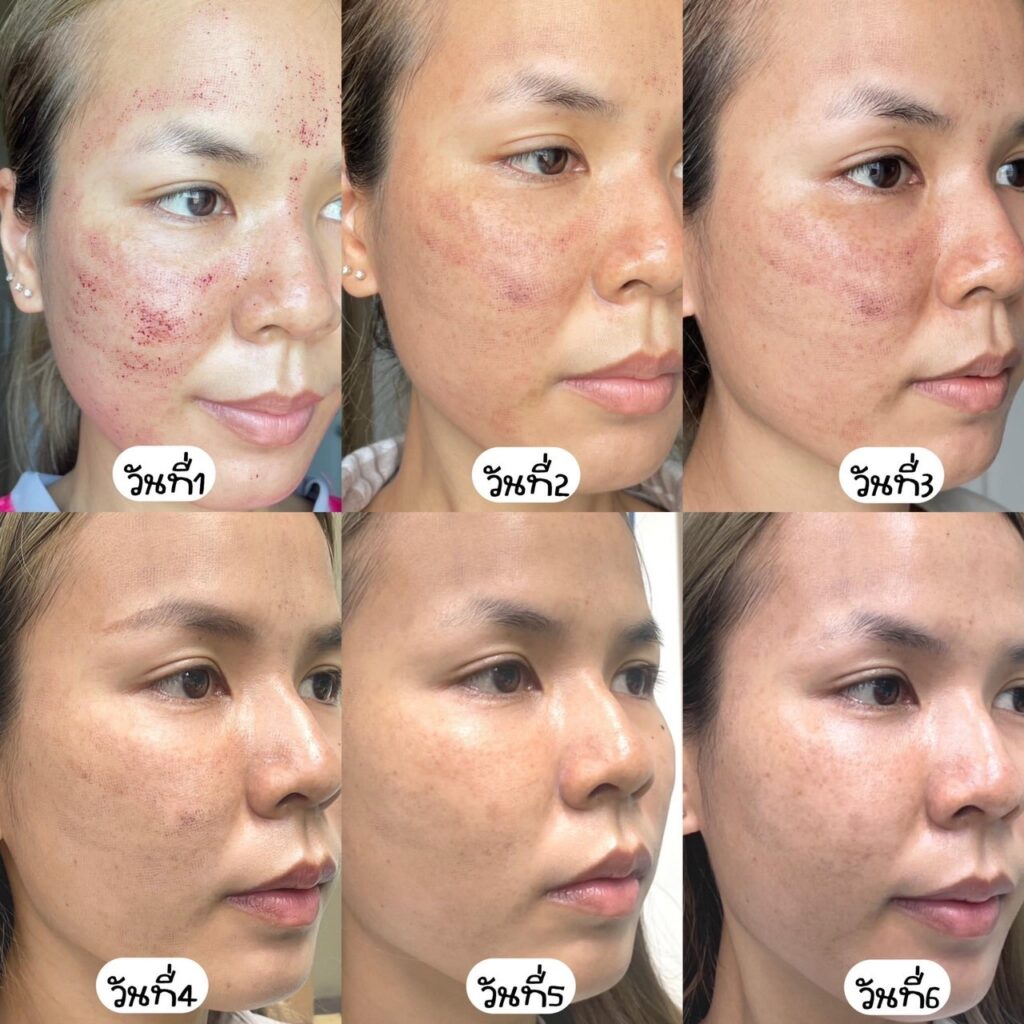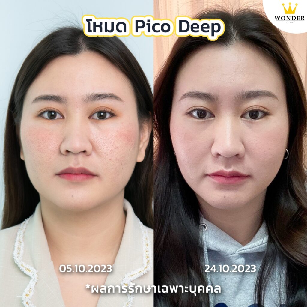 ที่เห็นทำแล้วหน้ามีเลือดซึม คือ การยิงในโหมด Fractional หรือ PICO Deep เป็นการใช้พลังงานระดับสูงเพื่อให้ผิวมีการสร้างใหม่ โดยที่เนื้อเยื่อรอบข้างจะไม่ถูกทำลาย จะเห็นผลในการฟื้นฟูผิวได้ใน 7 วัน เหมาะสำหรับคนที่ต้องการรักษาหลุมสิว ปรับผิวเรียบเนียน